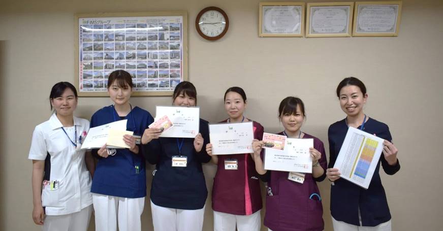 新人看護師50名が、4月2日~4月10日までグループに分かれて11部署(SCU3部署、急性期5部署、地域包括ケア病棟、回復期リハビリテーション病棟、手術室)でのローテーション研修を実施しました。ローテーション研修にて各部署を経験した新人には希望する3部署を選択してもらい、その結果をふまえて4月13日に看護部長より配属部署を発表、所属長と共に記念撮影を行いました。